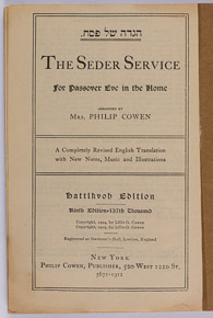 Lillie Cowen (1851 -1939) was the first woman to translate the Haggadah. In 1904, she published the Cowen, it was the first mass-produced adaptation of the Haggadah in modern American vernacular and the most popular Haggadah in the United States in the first quarter of the twentieth century. The original text contained the score for “America” and the Star Spangled Banner”. This edition of 1911 also included an early version of Hatikvah; Cowen was both deeply American and a staunch Zionist.