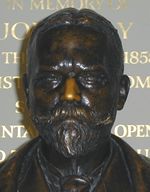 As you pass through the lobby notice the bust of John Hay executed by Augustus Saint-Gaudens. The nose has been rubbed shiny by generations of Brown students in the hope that doing so would bring good luck. (Use your mouse pointer for a virtual nose-rubbing experience.) On the wall behind the bust is an inscription in memory of John Hay: "Poet, Historian, Diplomatist, Statesman, who maintained the Open Door and the Golden Rule."