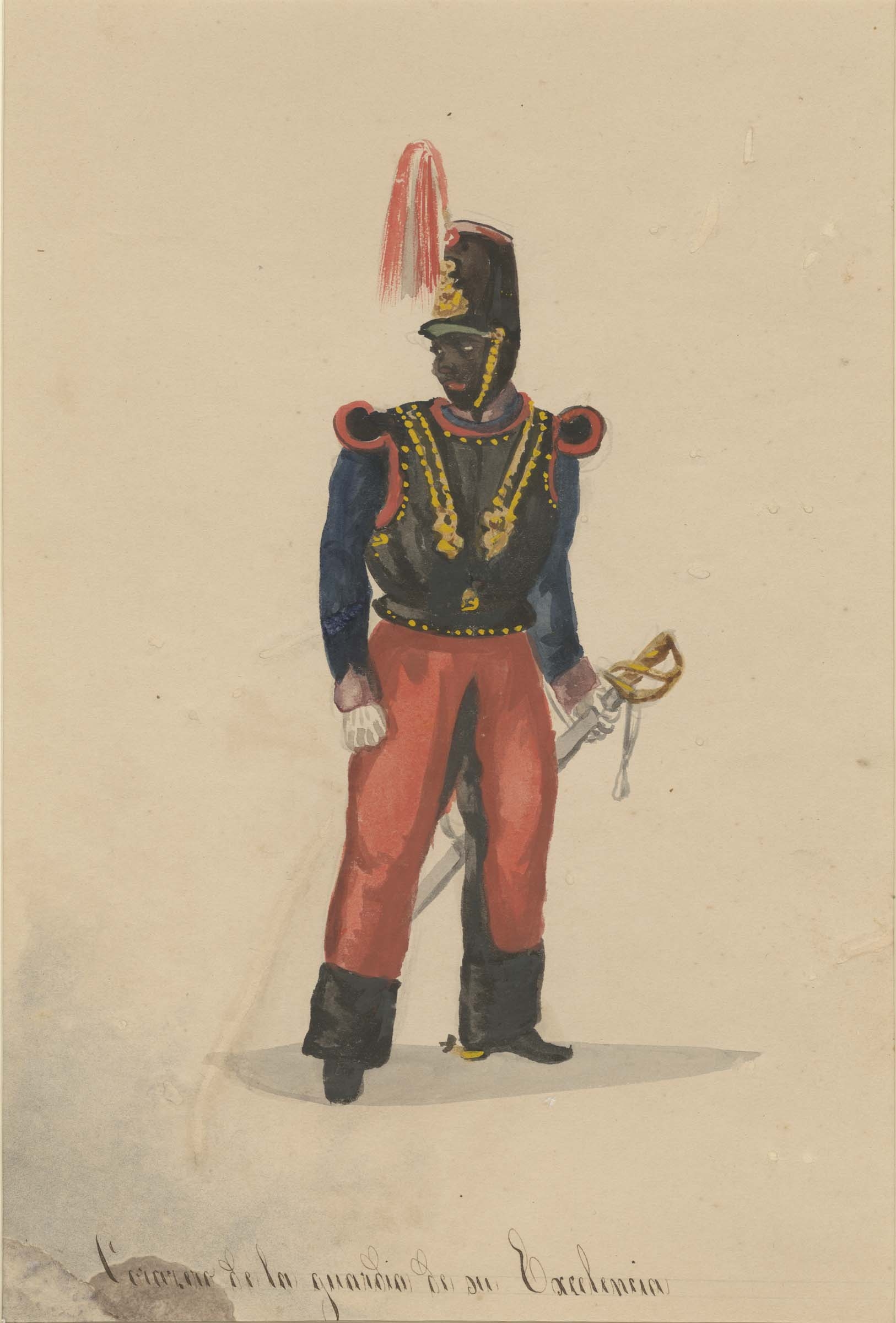 Beautifully detailed hand-colored engravings by the French military artist Nicholas Hoffman (1740–1823), illustrate the many uniforms of the French army during the latter years of the Ancien Régime and the Napoleonic period. Also in the French section is a suite of 249 gouache renderings of army uniforms made for King Louis XVI, handsomely bound in leather and embossed with the king’s arms, as well as a small volume of hand-colored engravings of uniforms bound for Marie Antoinette and stamped with her arms. The Spanish section includes a series of albums made circa 1767–1780 for King Carlos III, containing watercolors of the dress and equipment of all units of the home and colonial armies.