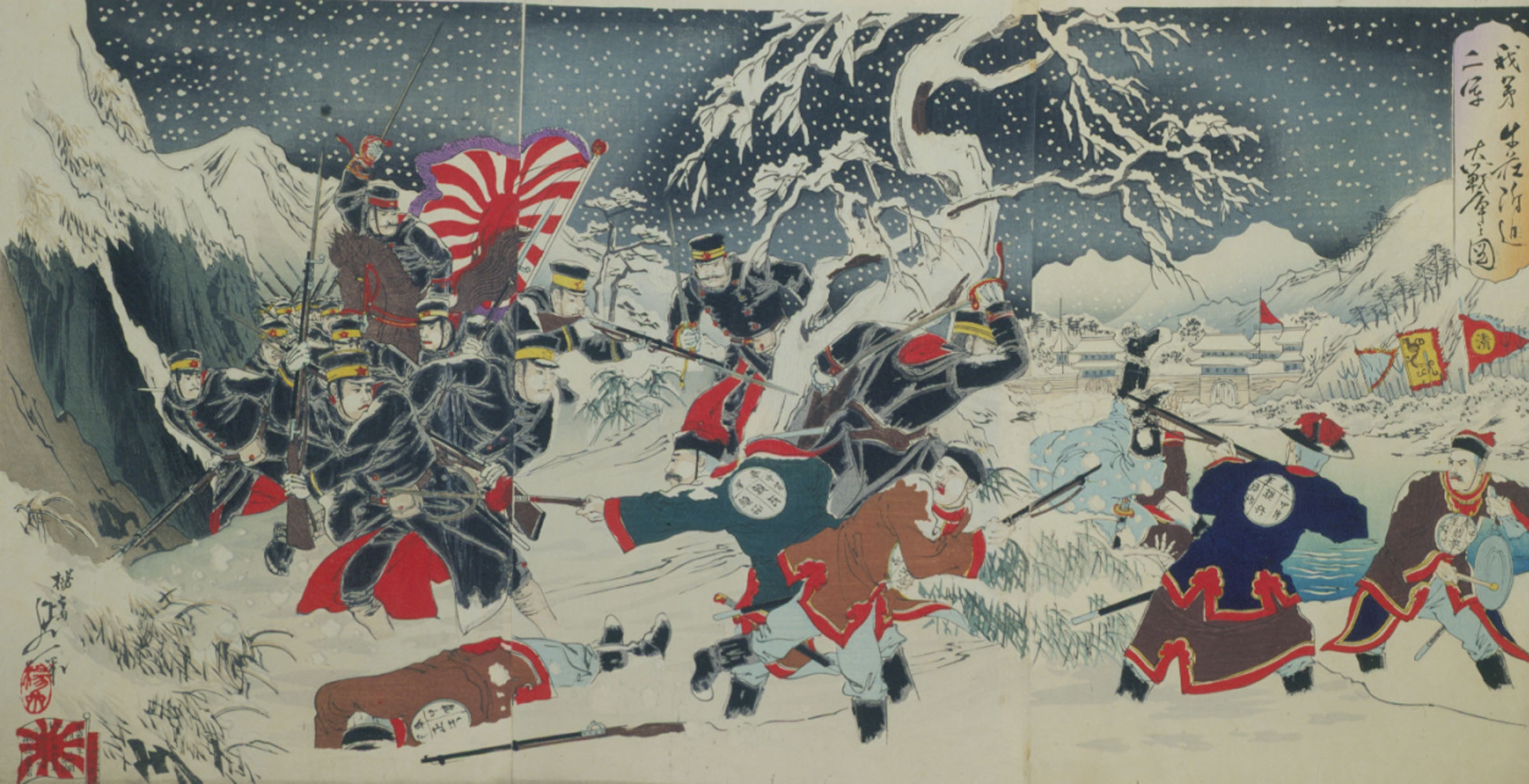 There are numerous portfolios containing engravings of battles and portraits of generals. One portfolio has depictions of Japanese ceremonial costume, accessories, and fabric patterns from a 10-volume work, published around 1820. The late 19th- and early 20th-century military history of Japan is well covered by numerous wood-block prints showing scenes from the Sino-Japanese and Russo-Japanese wars. Among the prints and watercolors of Latin American uniforms is a set of 11 unsigned original watercolors by a Peruvian artist depicting mid-19th century uniformed figures.