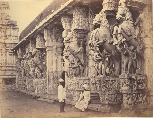 Mandapa with facade of carved stone horses, Ragantha Temple, Srirangam, 1869