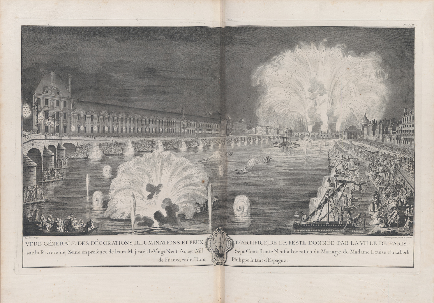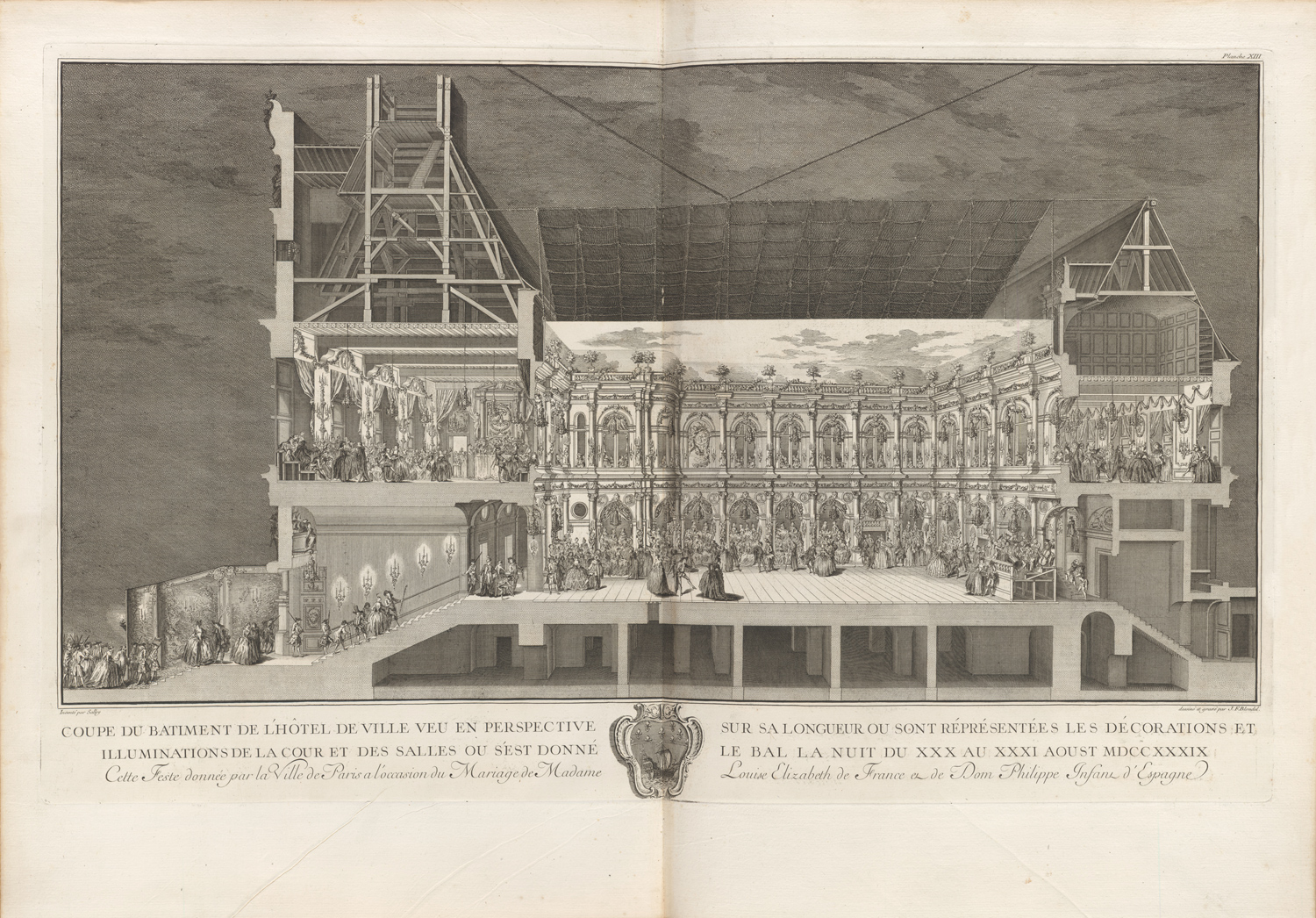 Description of the festival given by the City of Paris on the occasion of the marriage of Madame Louise-Elizabeth of France, and Lord Philip, prince and grand admiral of Spain, on the 29th and 30th of August 1739.